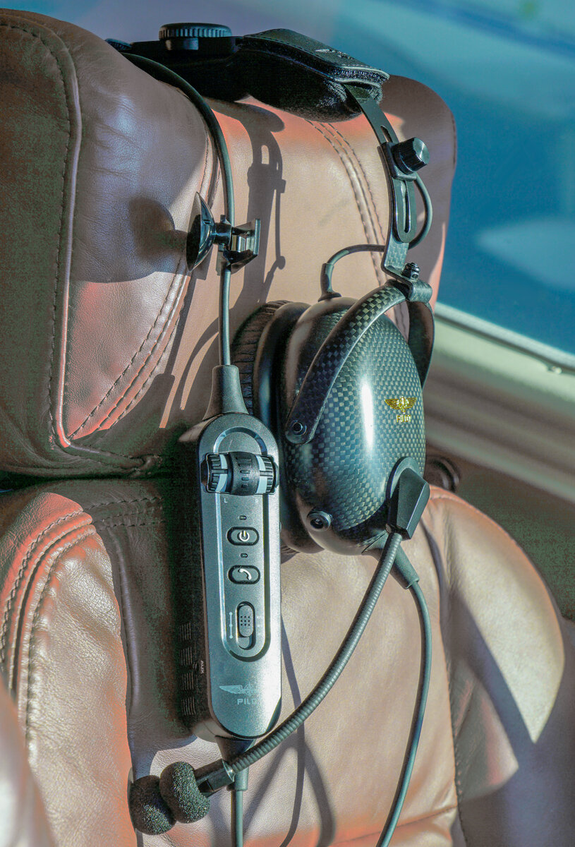 Thanks to the stepless adjustment mechanism, the clamping pressure can be individually adjusted, while the memory foam covered with Merino wool offers maximum wearing comfort. The built-in CO detector warns you with acoustic and visual signals against deadly carbon monoxide. With Bluetooth or the AUX input, you can enjoy your favourite music or listen to alerts from aviation apps, and the two integrated LEDs are particularly helpful during night flights.